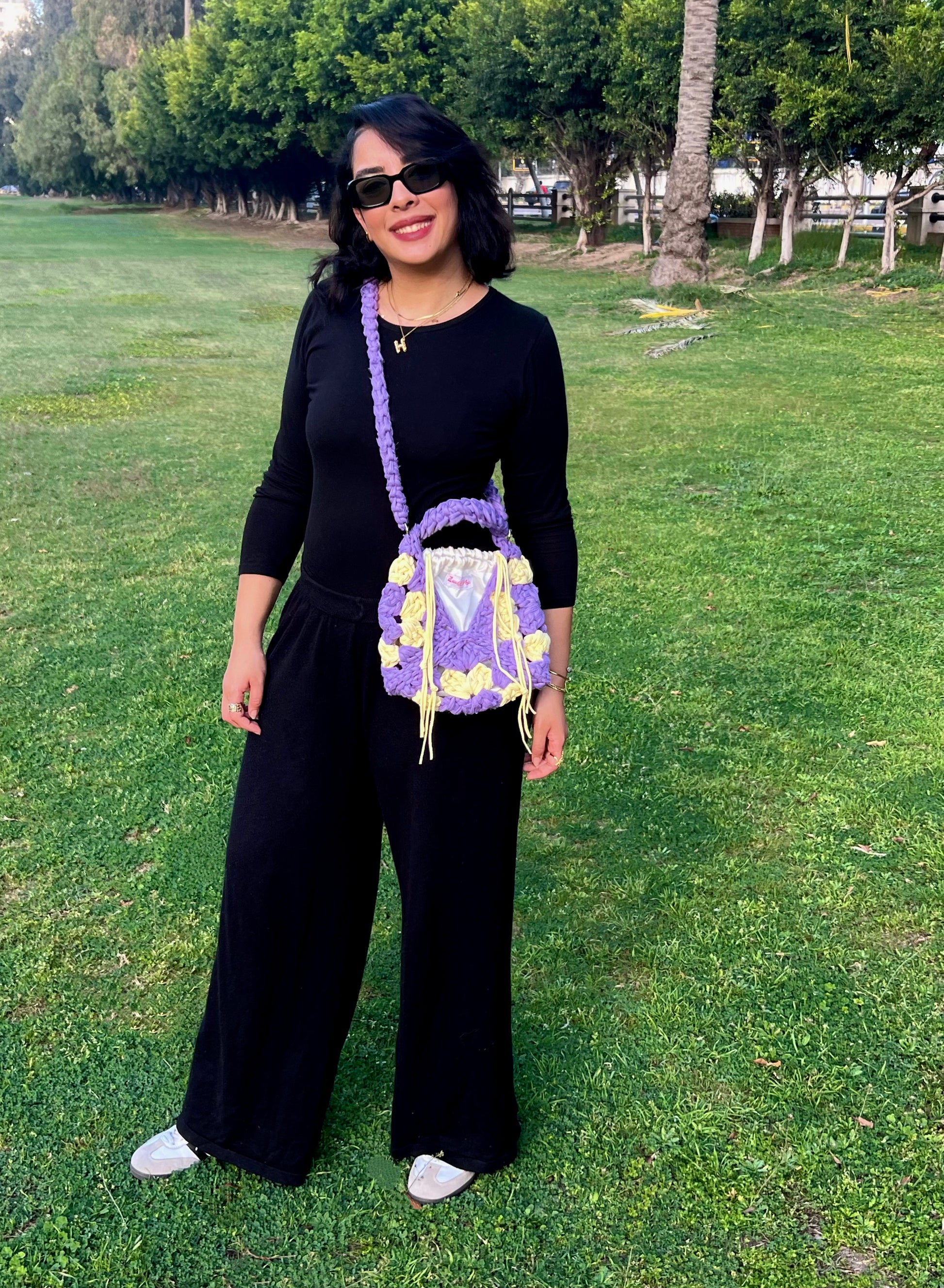 Bold, playful, and full of texture—this handcrafted crochet bag is made to turn heads. Featuring a soft floral motif and a chunky braided strap, it blends artistic flair with everyday functionality. With a roomy interior and a secure drawstring closure, it's perfect for carrying your essentials in style. Whether worn on your shoulder or crossbody, this bag brings a touch of handmade charm to any outfit.
