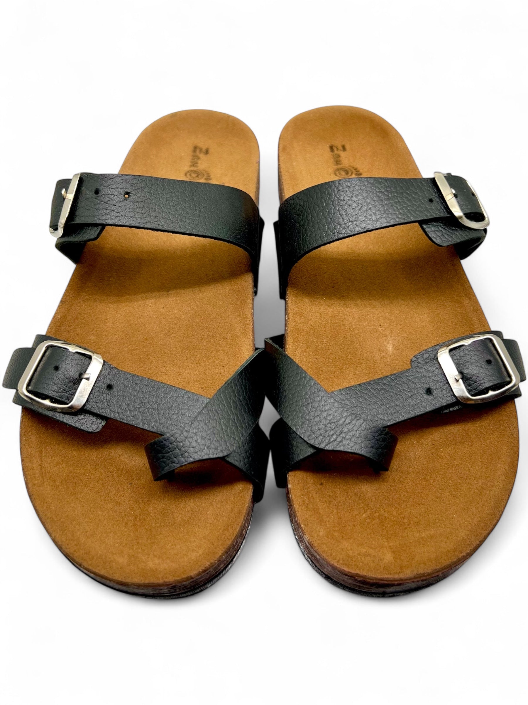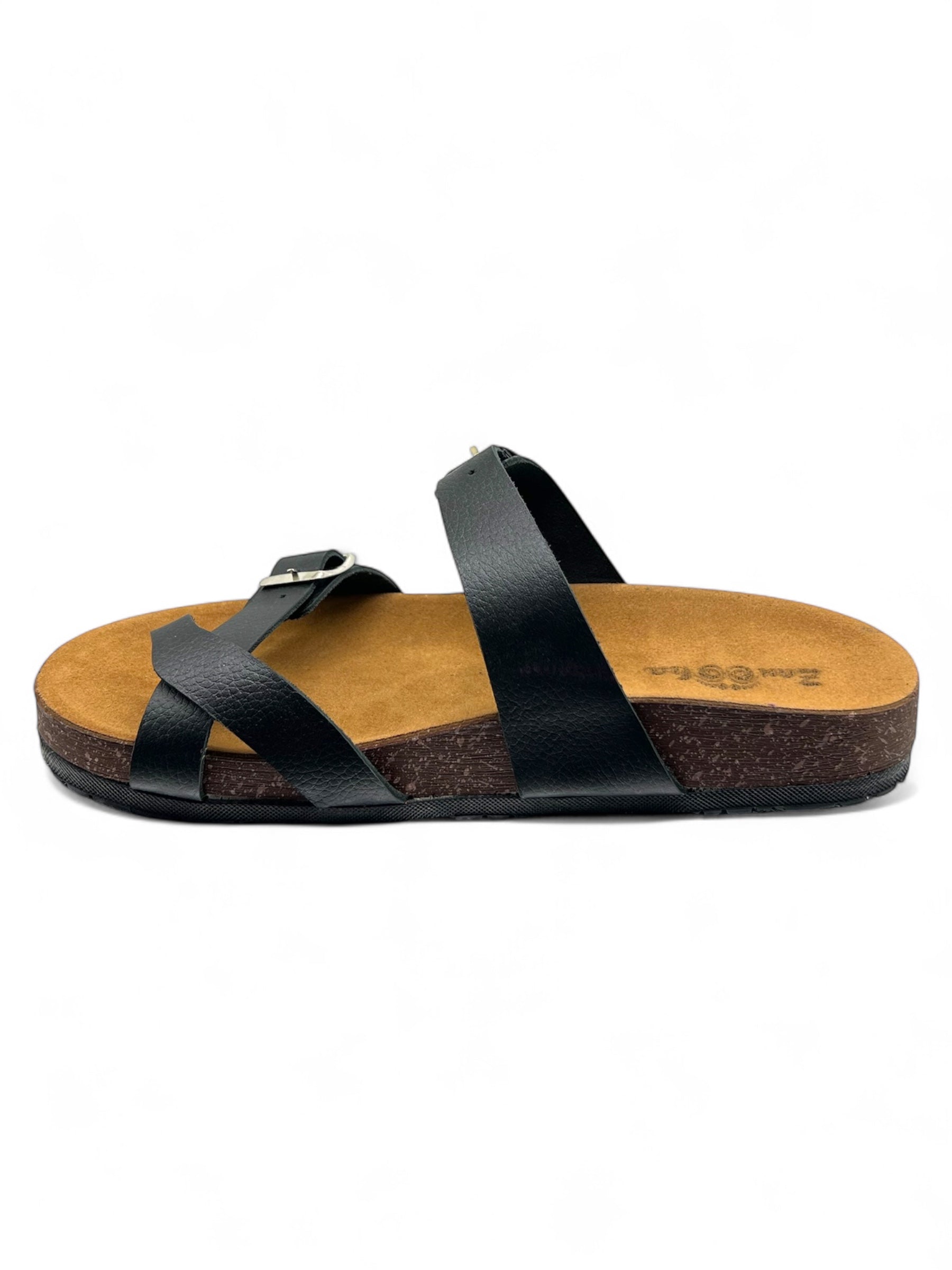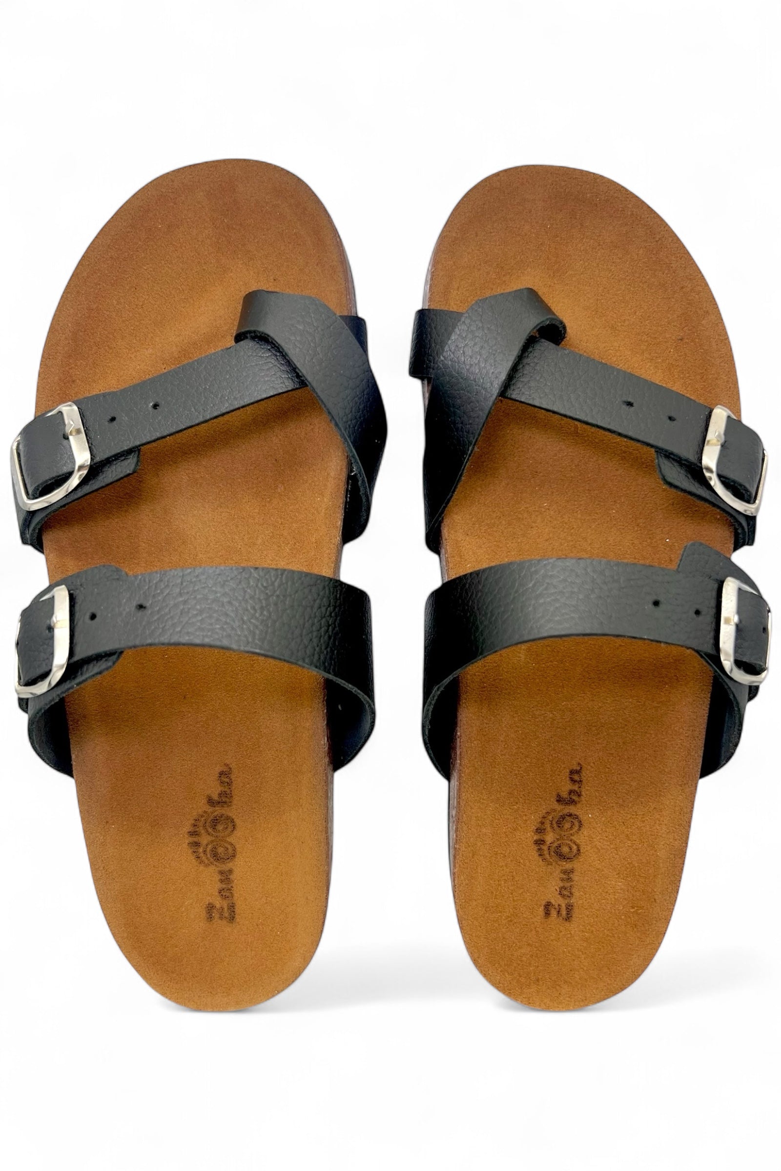 Elevate your step with these sleek black slippers, crafted from genuine leather for a refined yet durable finish, offering unmatched support and all-day comfort. Adjustable straps with metallic buckles ensure a secure, customized fit, while the minimalist cross-strap design adds a modern touch. Lightweight, breathable, and effortlessly stylish — the perfect pair for both casual outings and polished looks.
