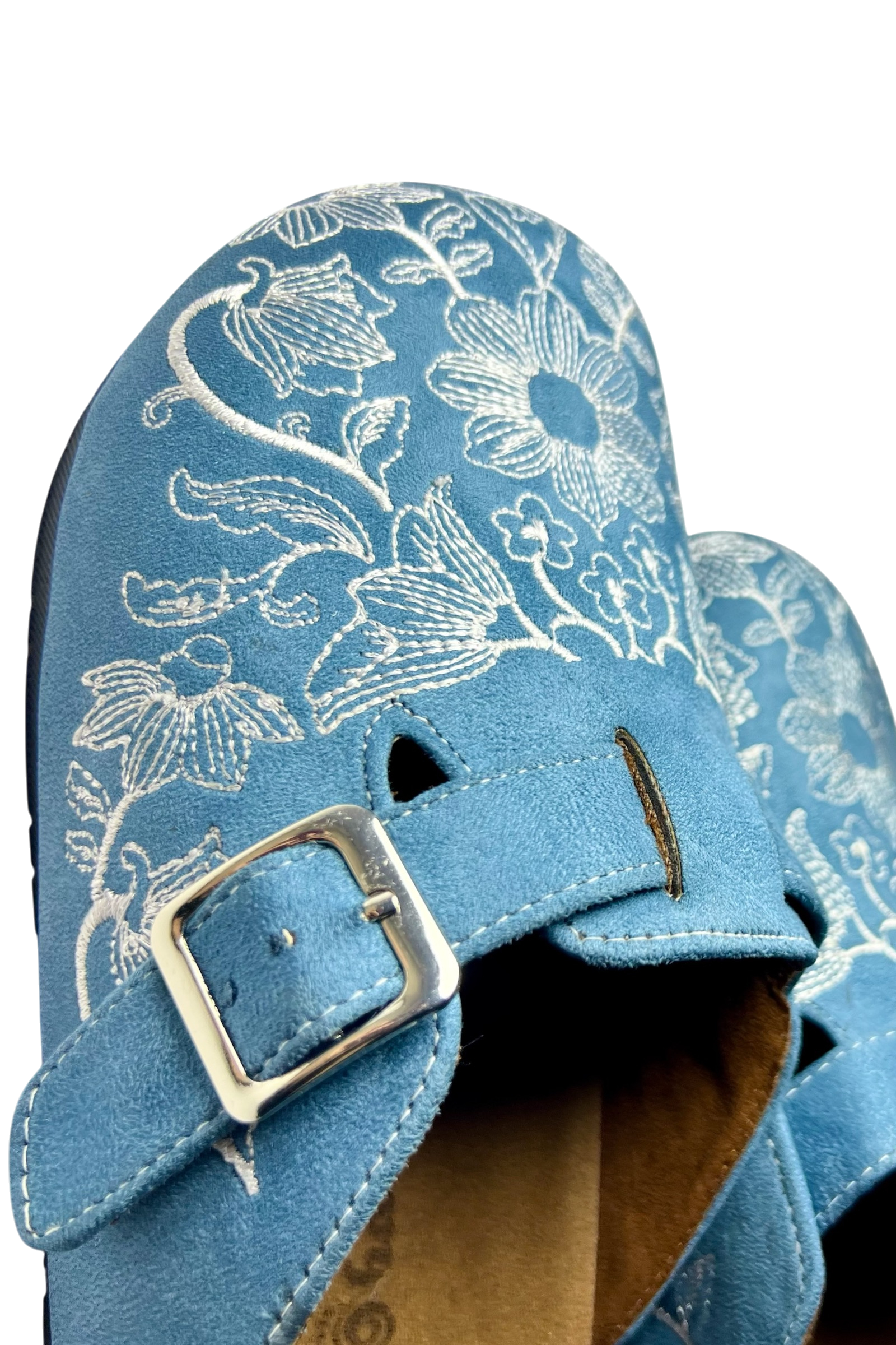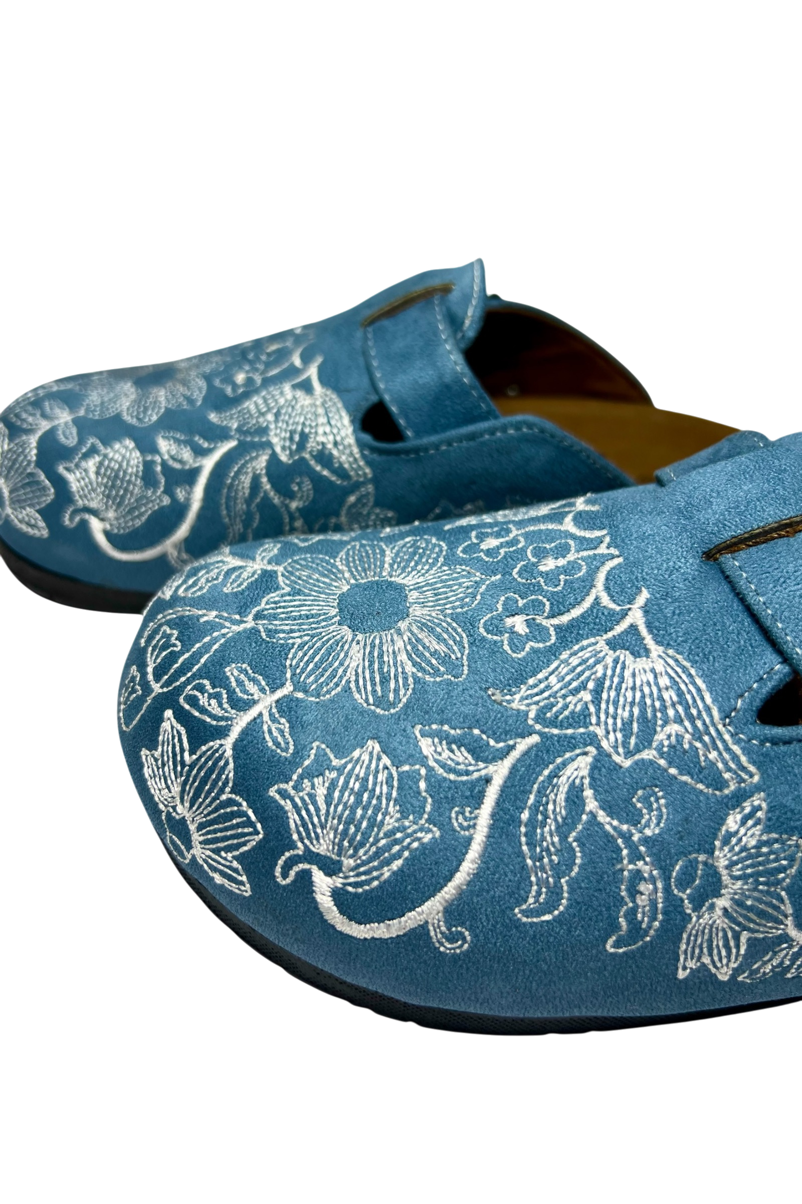 Embrace serene sophistication with the Ocean Bloom Clogs, where tranquil blue meets delicate white floral embroidery for a fresh, feminine aesthetic. These clogs are your invitation to bring a touch of coastal elegance into your everyday wardrobe.